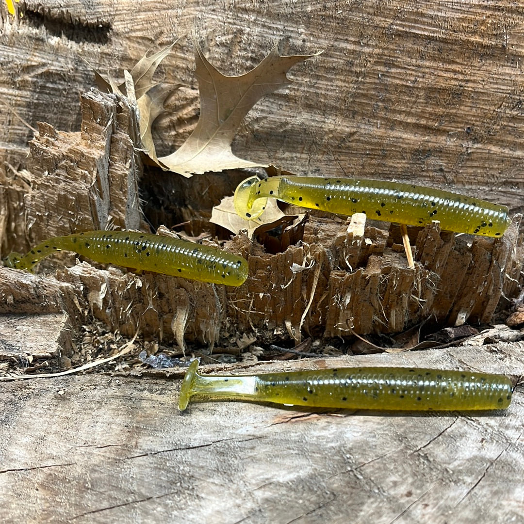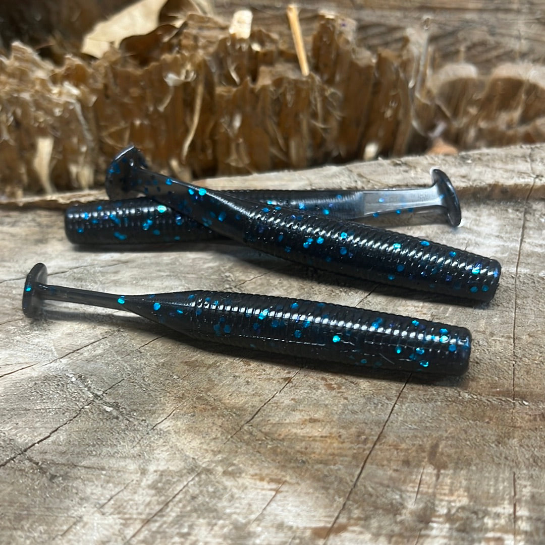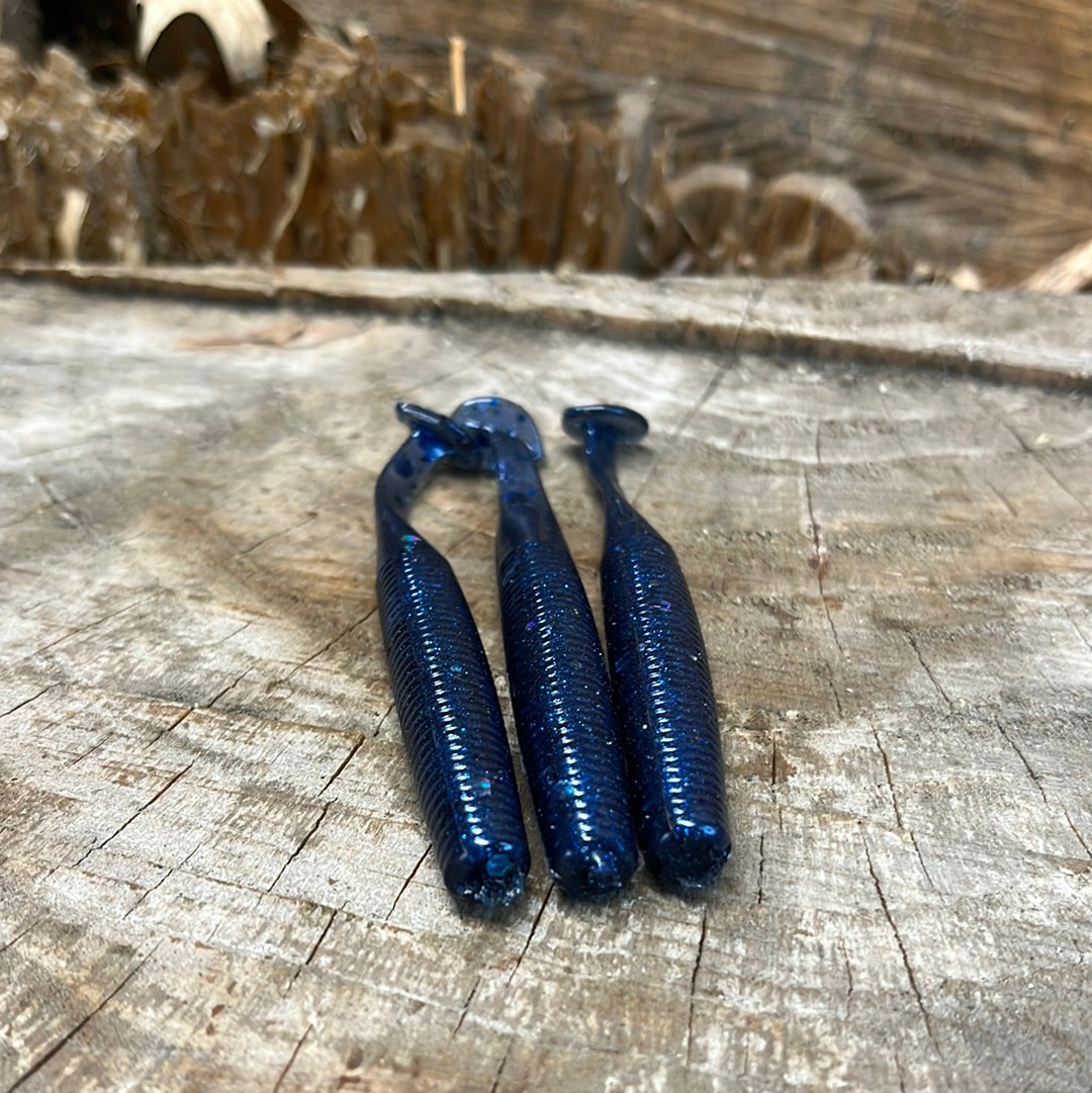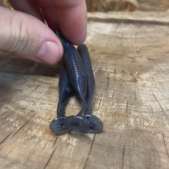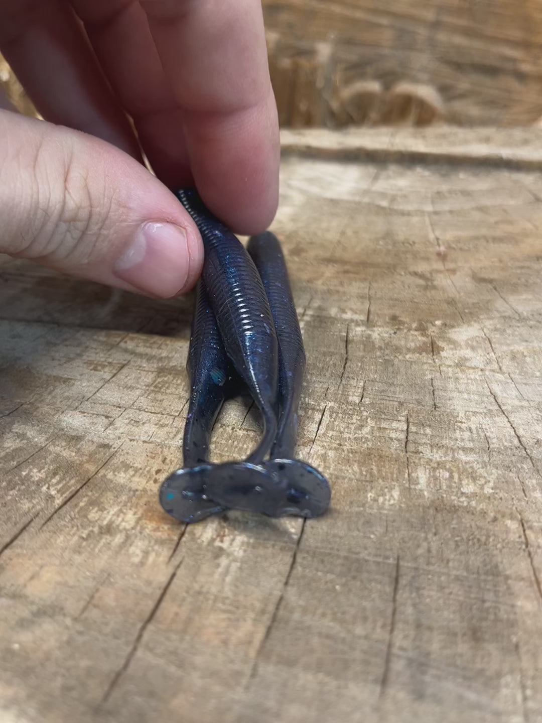 Ned's or Metal Heads as we like to call them were born out of the Midwest finesse niche in bass fishing by none other than Ned Kehde. But these hybrids are on a new level of fineness action. With the added paddle tail you will get twice the action on the drop. Rigged on a mushroom head jig.