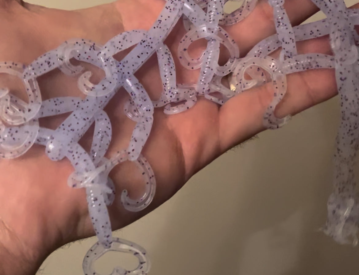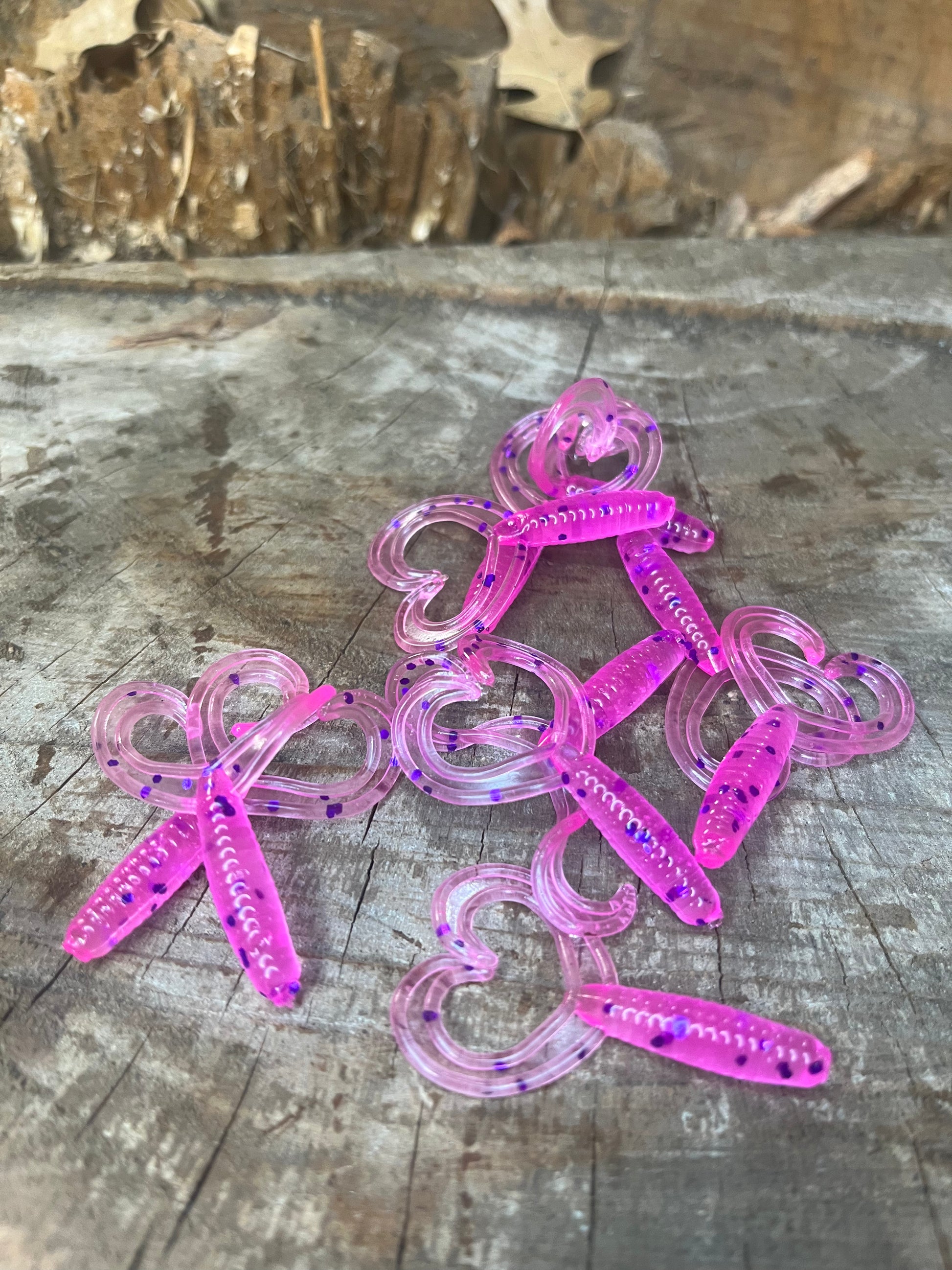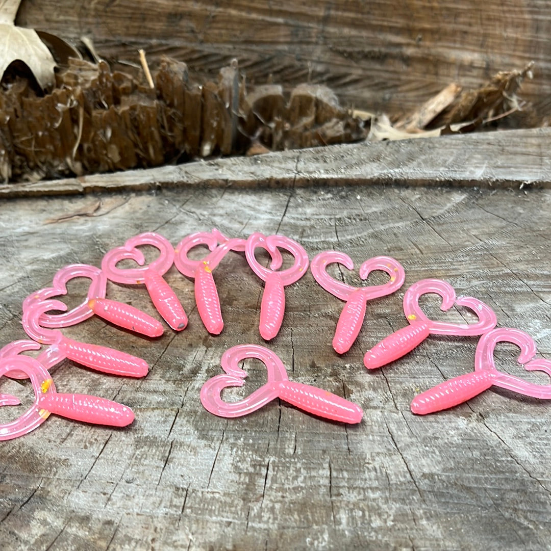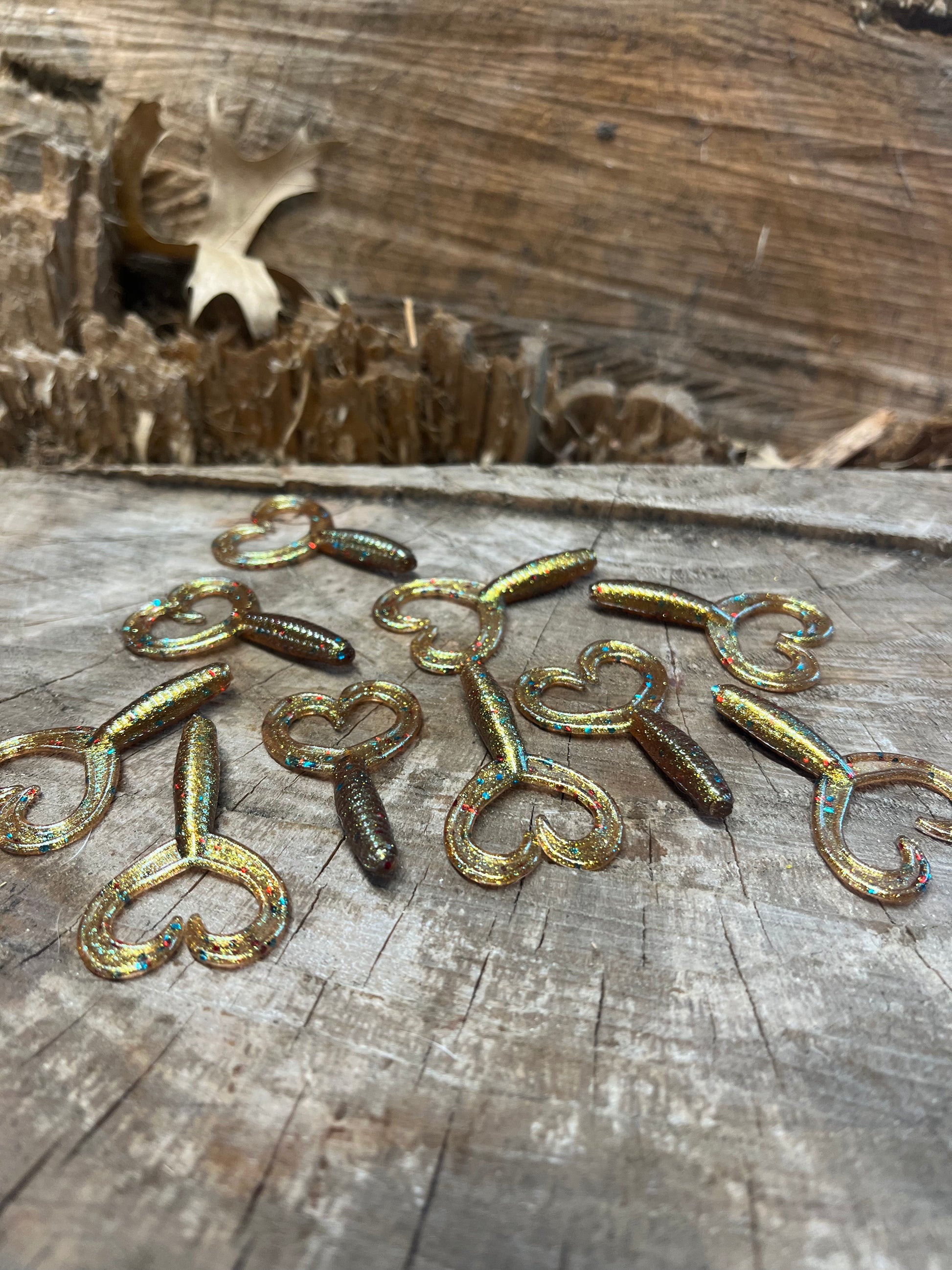 Twin Tails are our double-tailed grub with a ribbed body to create additional vibration, while its twin tails pulsate and trigger strikes great on a jighead. 1.75 inch in length great for the dip next to brush to get them slabs out.