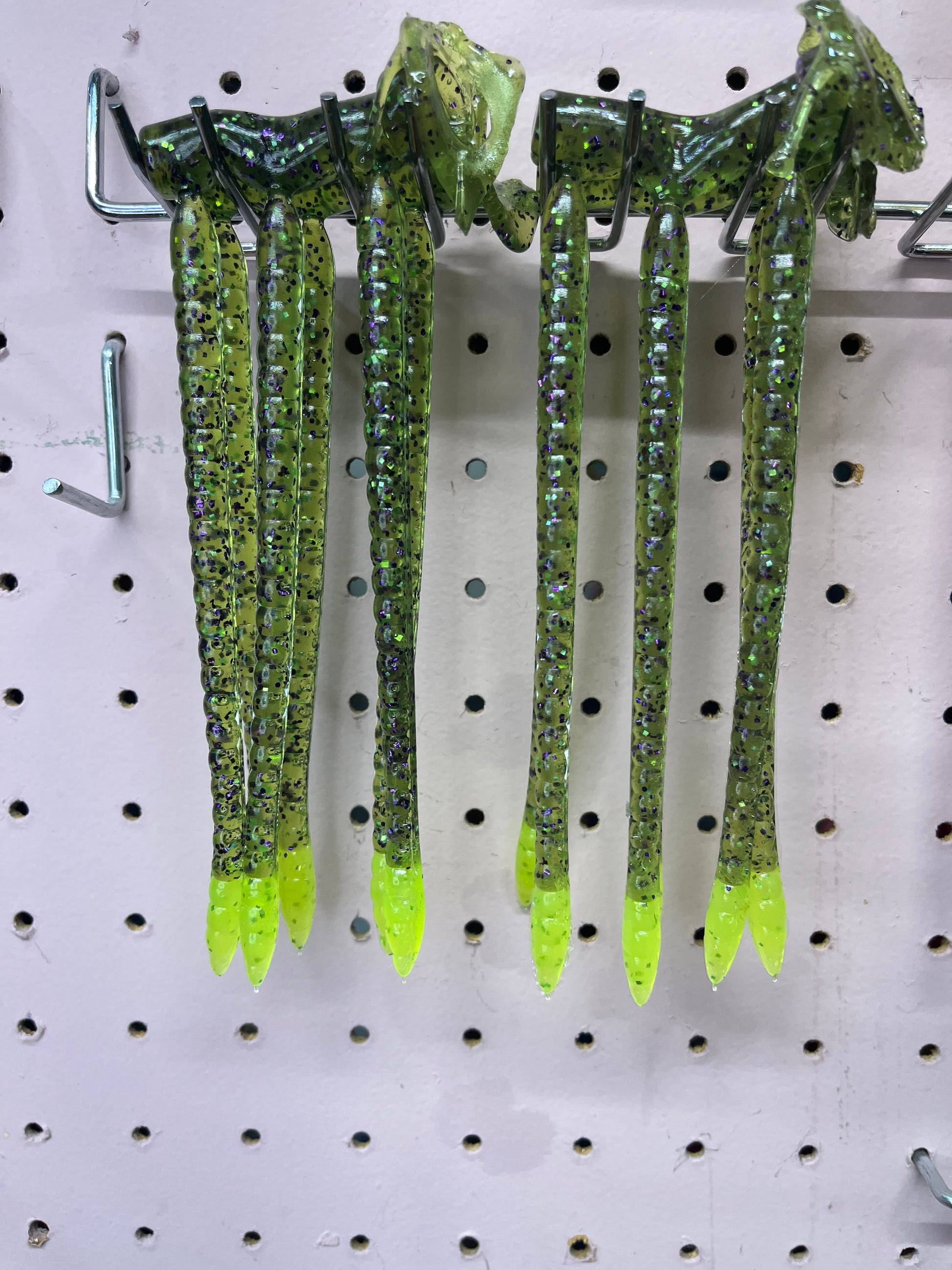 Simple named Worms are our 5" finesse worm that can be used on a shaky head, Carolina rig, drop-shot or the newly-popular Neko rig to catch highly-pressured fish. It works equally well in clear or stained water. The slender body and bulb tail respond with exaggerated action to the slightest movement of the rod tip.